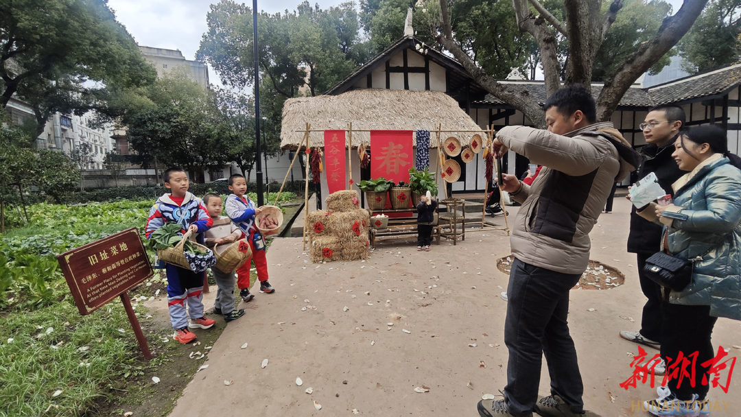 正月初三至初七,新民学会旧址、李富春故居、中山亭、湖南自修大学旧址四大文物保护单位正常开放,各场馆每日安排四场免费定时讲解,增设定制印章,让参观过程更具仪式感。其中,新民学会旧址的布置颇具巧思,前坪“五谷丰登”装置还原出浓郁乡村风貌,红辣椒、青菜、白萝卜相映成趣,生动再现了20世纪初蔡和森一家居住在岳麓山脚下的生活场景,吸引众多游客驻足打卡。