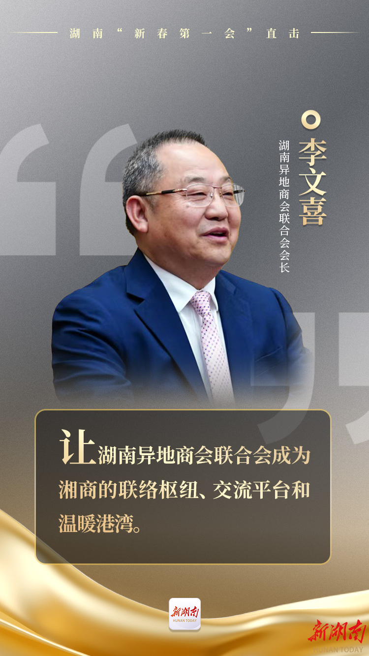 “我们将深入实施联合会‘服务发展十项行动’,为实现‘三高四新’美好蓝图、奋力谱写中国式现代化湖南篇章贡献湘商力量。”李文喜表示。