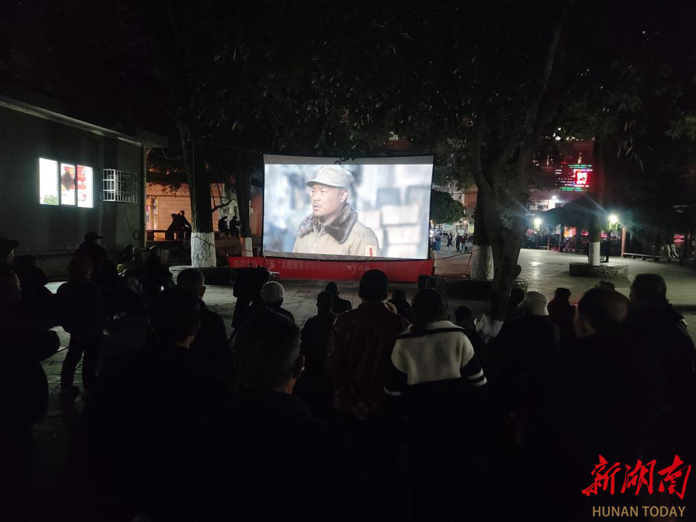 在峒河公园放映公益电影《跨过鸭绿江》(市电影服务中心供图)