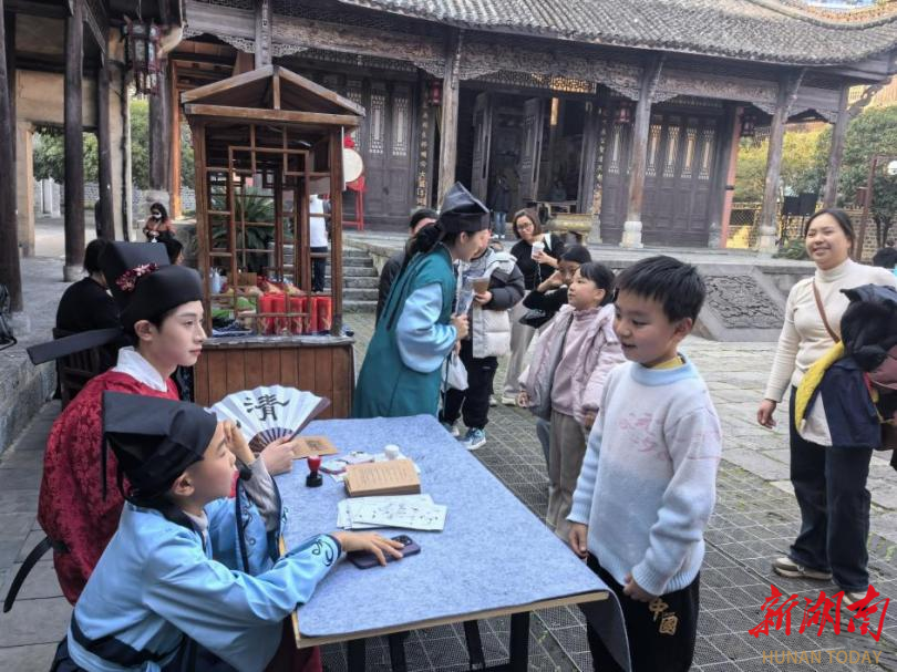 “小书童”“状元郎”在乾州文庙与游客对诗(乾州古城公司供图)