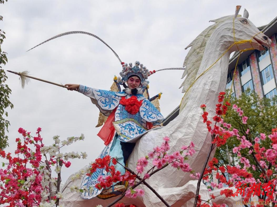 湖南省级非物质文化遗产“乾州春会”代表性传承人滕勇的儿子滕德智如愿登上“俏罗成”春台(黄俊力/摄)