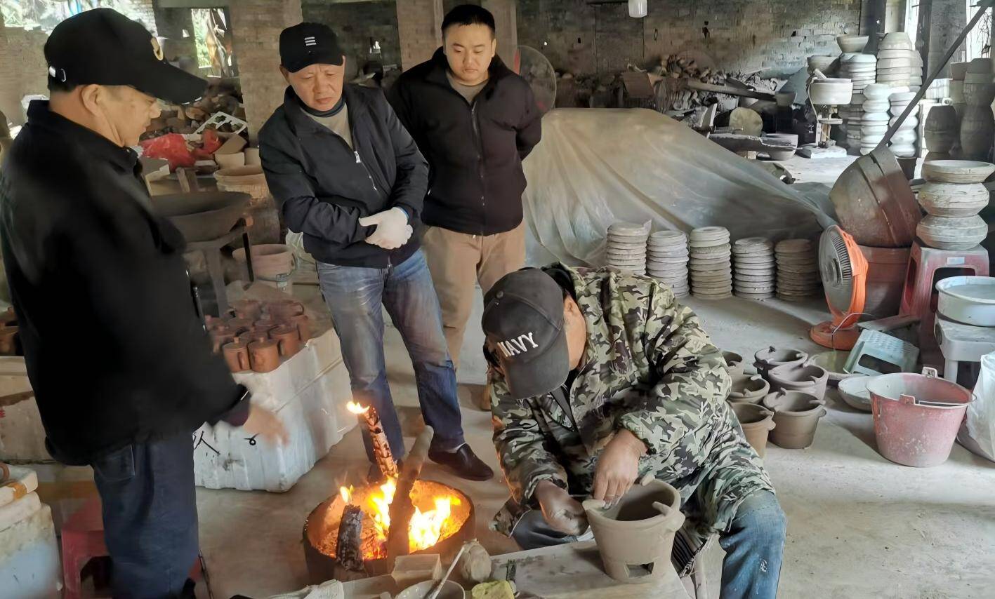 (粉丝们自发来到鹤州窑制作工坊,观摩研习龙窑土陶制作技艺。)