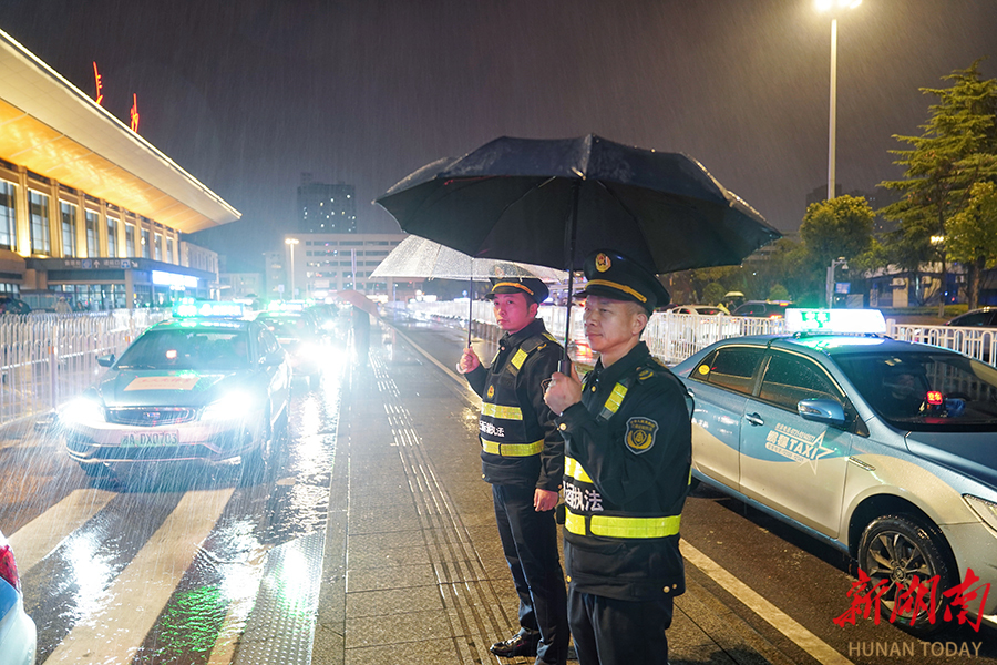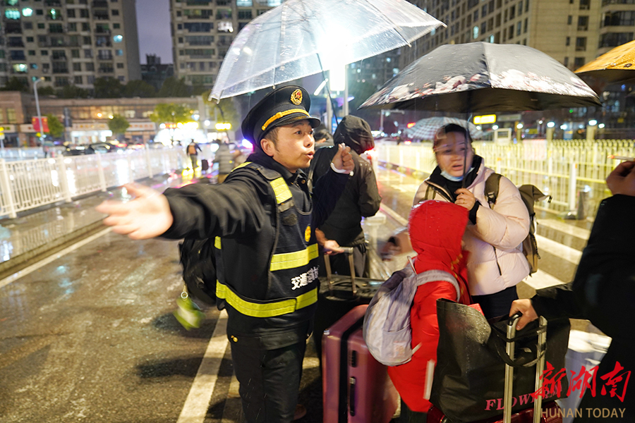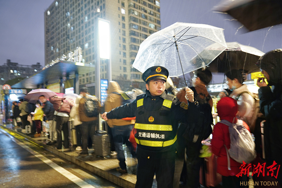 2月23日晚11时,长沙城际站迎来春节返程客流高峰。长沙市交通运输执法人员坚守岗位,通过延长服务时间、加强重点区域巡查等措施,在维持客运秩序的同时为旅客提供出行指引。春节期间,该市交通执法部门重点整治出租车违规营运、私家车非法营运等行为,保障群众平安有序返程。 湖南日报全媒体记者 徐行 通讯员 陈果 摄影报道