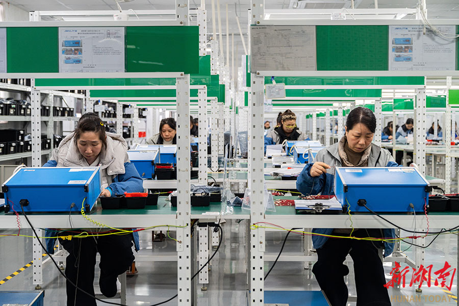 2月24日,道县高新技术产业开发区,工人在适配器生产流水线上工作。当天是春节假期结束后的第一个工作日,各地企业纷纷开工生产,力争“开门红”。 蒋克青 摄(湖南图片库)
