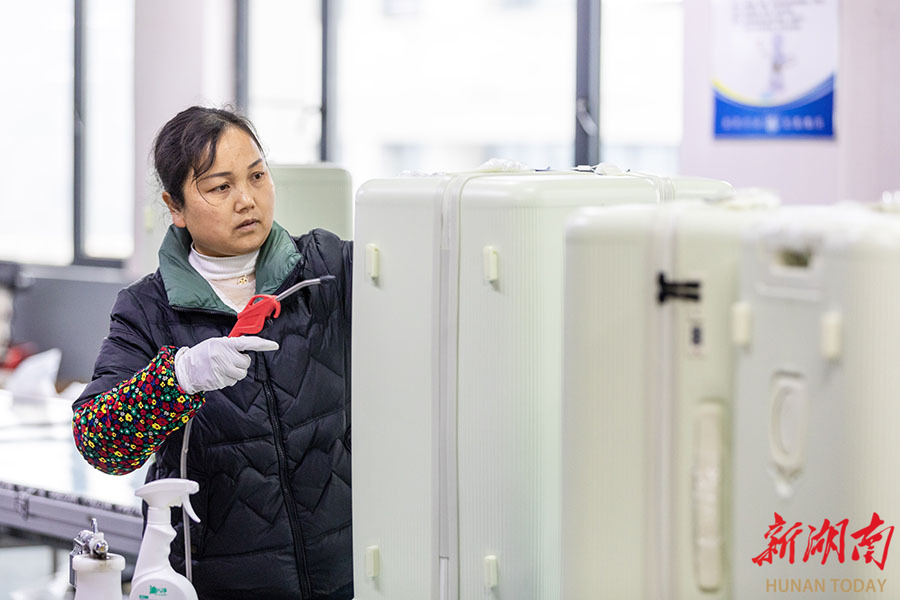 2月24日,吉首经开区箱包服饰产业园,福米箱包有限公司的工人在生产线上赶制订单。当天是春节假期结束后的第一个工作日,各地企业纷纷开工生产,力争“开门红”。 彭璟 摄(湖南图片库)