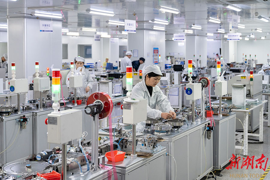 2月24日,永州市冷水滩区湖南捷力泰科技有限公司生产车间,工人在赶制声学器件订单。当天是春节假期结束后的第一个工作日,各地企业纷纷开工生产,力争“开门红”。 雷中祥 摄(湖南图片库)