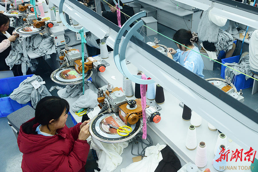 2月24日,嘉禾县高新区郴州丰悦针织有限公司,工人在生产线上忙碌。当天是春节假期结束后的第一个工作日,各地企业纷纷开工生产,力争“开门红”。 黄春涛 摄(湖南图片库)