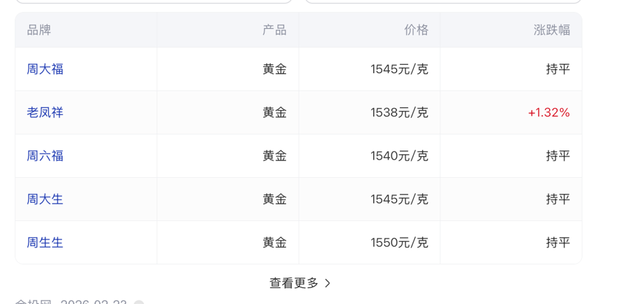 境内金饰价格。