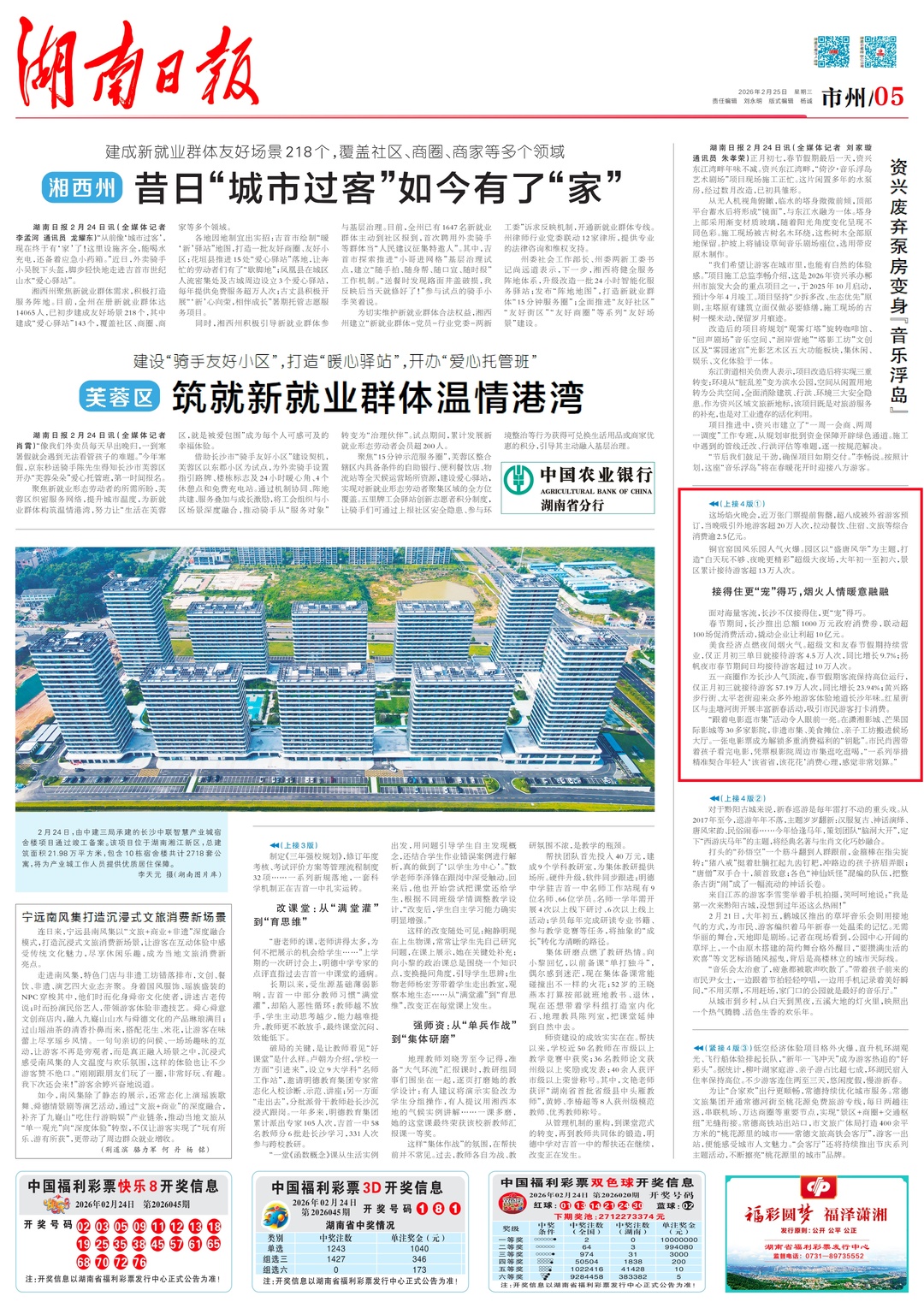 非遗体验成为亮点。正月初五,长沙非物质文化遗产馆人头攒动,24小时接待游客1.6万余人次。棕叶编、中国结编织等传习体验活动,吸引千余名市民游客参与。随着湖南日报、长沙晚报、浏阳日报三级党报同步聚焦浏阳道官冲,推出《古村年味》报道,该村非遗手工造纸技艺更火了,游客慕名而来,只为亲眼见证传承千年的造纸技艺,在亲手触摸中感受古村年味。