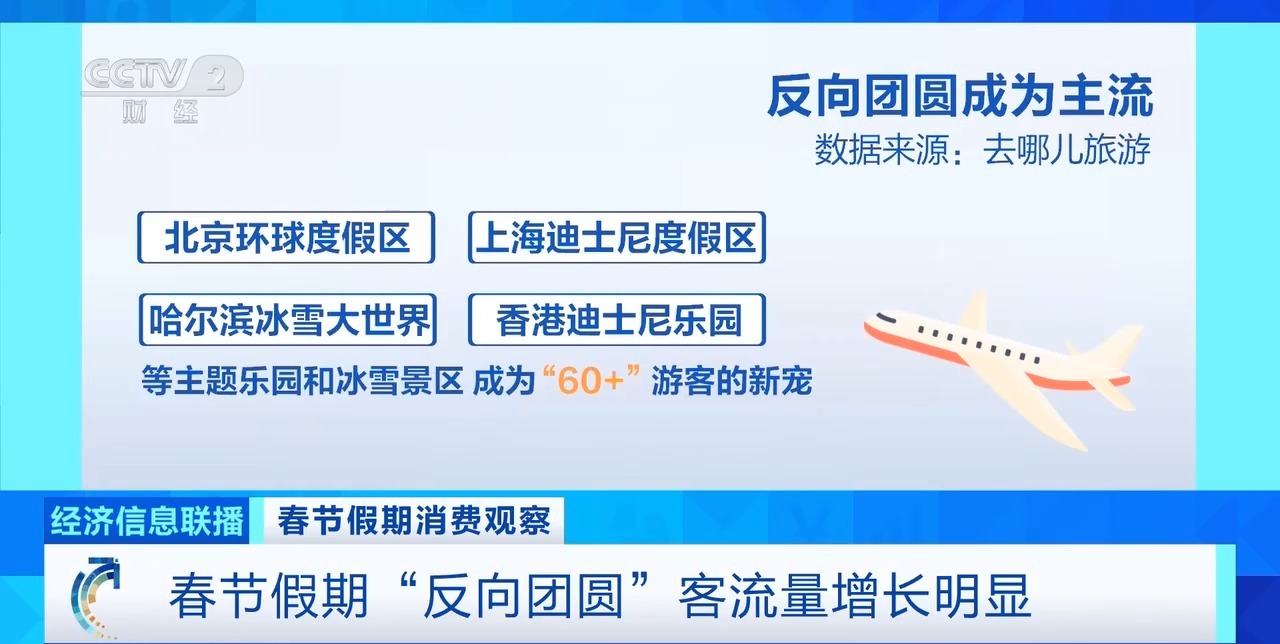 “反向团圆”从往年的小众选择升级为主流潮流,成为今年春节文旅市场的一大亮点。在大城市工作的年轻子女,接父母前往北上广深等一线城市过年。数据显示,2026年春节假期,反向飞往北京的旅客中,18%年龄在50岁以上,其中60岁及以上旅客同比2025年春节假期增加超一成。