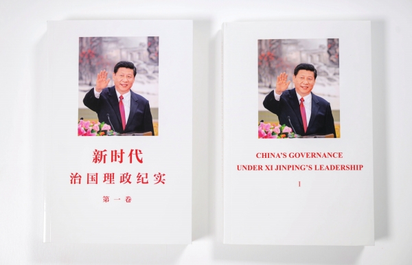 图为《新时代治国理政纪实》第一卷中英文版。新华社 发