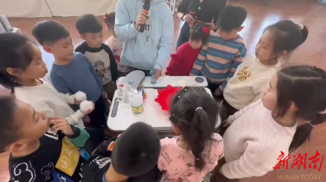 活动期间,社区托管课堂秩序井然、氛围热烈。在科学小实验课堂上,志愿者化身“科学魔法师”,带领孩子们操作趣味实验,从色彩变化到物理现象,在动手实践中讲解原理,激发探索欲与求知欲,让科学的种子在孩子们心中生根发芽。