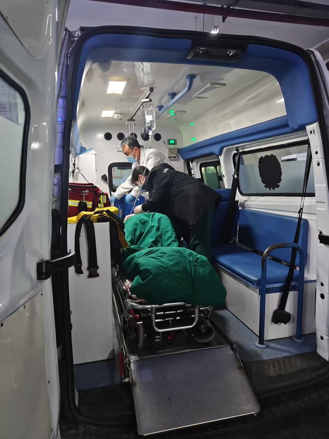 “孕妇破水,宫口已开,随时可能生产,位置在良田镇拥堵路段!”指令由良田卫生院救护车随车医生信息传来,李强医生、黄丽霞护士、杨威涛司机急救小组毫不犹豫,立即拉响警笛,向着生命的方向疾驰。彼时的道路上,车龙望不到头,警灯闪烁,杨威涛司机师傅在密集的车流中劈开一条道路,经过20分钟的急速行驶,终于在拥堵的道路中间与良田卫生院救护车对接成功,并迅速将孕妇转移至我院救护车上,医护人员在颠簸的车厢里,一边密切监测李女士的生命体征,一边轻声安抚着她紧张的情绪,“别怕,我们在,马上就到医院!”