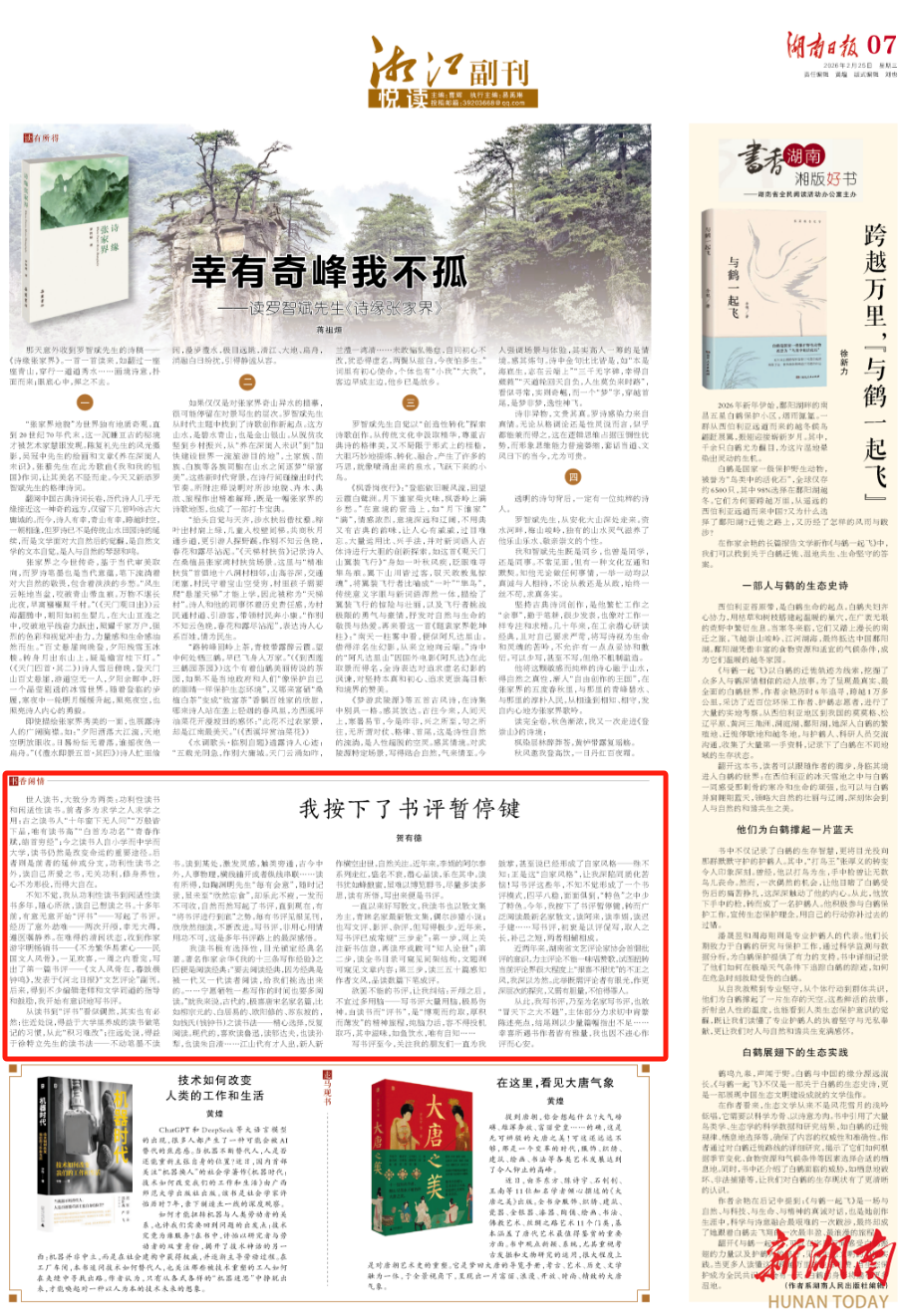 从读书到“评书”看似偶然,其实也有必然:往近处说,得益于大学里养成的读书做笔记的习惯,从此“积习难改”;往远处说,得益于徐特立先生的读书法——不动笔墨不读书。读到某处,激发灵感,触类旁通,古今中外,人事物理,横线铺开或者纵线串联……读有所得,如陶渊明先生“每有会意”,随时记录,虽未至“欣然忘食”,却乐此不疲,一发而不可收,自然而然写起了书评,直到现在,有“将书评进行到底”之势。每有书评见报见刊,欣欣然细读,不断改进。写书评,非用心用情用功不可,这是多年书评路上的最深感悟。