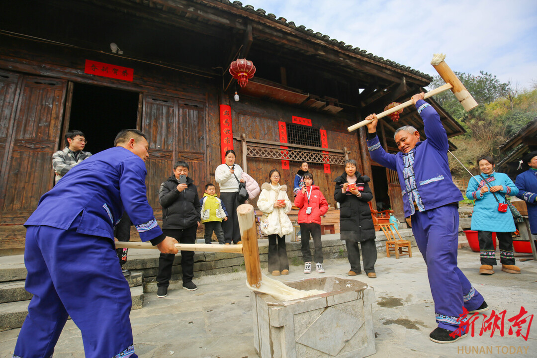 2026年2月13日,在湖南省湘西自治州永顺县双凤村,我拍摄当地土家人打糍粑。