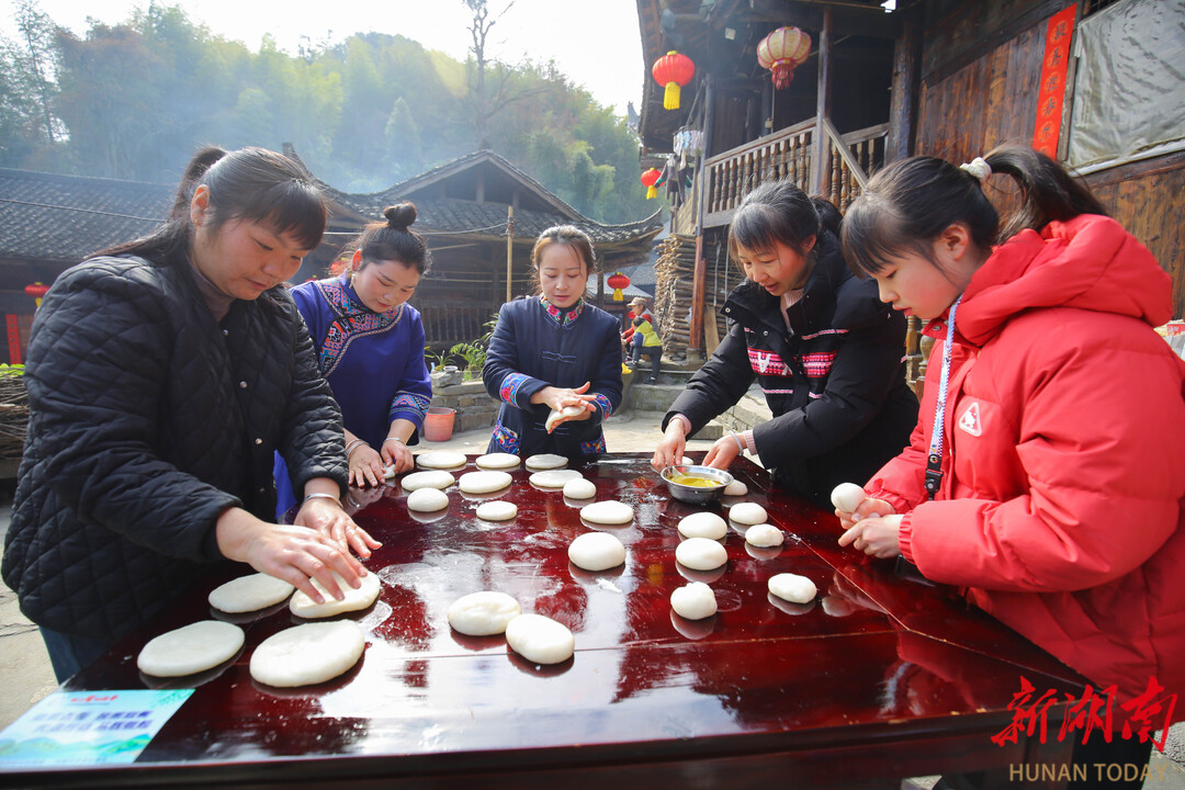 2026年2月13日,在湖南省湘西自治州永顺县双凤村,我和妈妈与当地土家族村民一起揉糍粑。