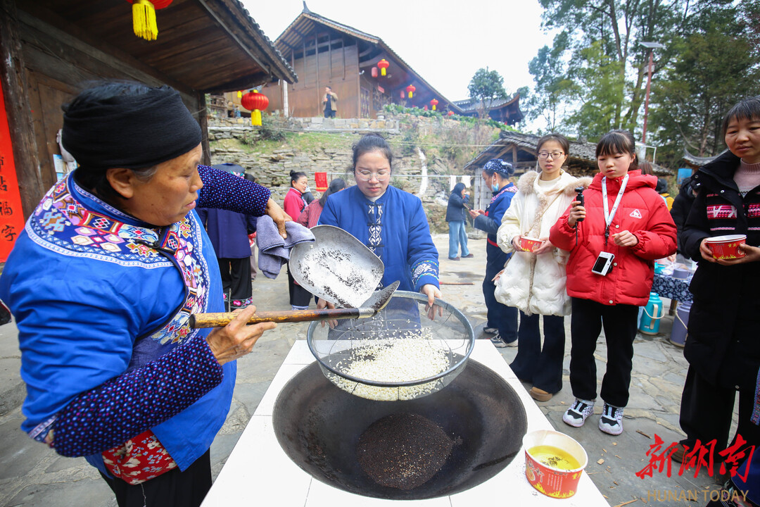 2026年2月13日,在湖南省湘西自治州永顺县双凤村,我拍摄当地土家人炒炒米,这是当地的小吃。