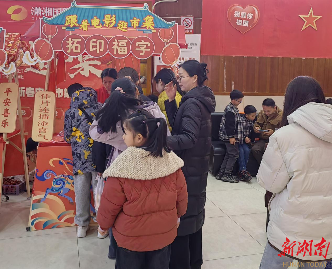湖南日报·新湖南客户端2月25日讯 (通讯员 罗飞)春节期间,潇湘国际影城永州店内张灯结彩、人流如织。作为湖南省“跟着电影逛市集”主题活动的永州分会场,影城将春节档观影热潮与传统非遗体验深度融合,打造了一场有声有色的“电影+”新春集会,让市民在享受现代视听盛宴的同时,能真切触摸到传统文化的温度与厚度。