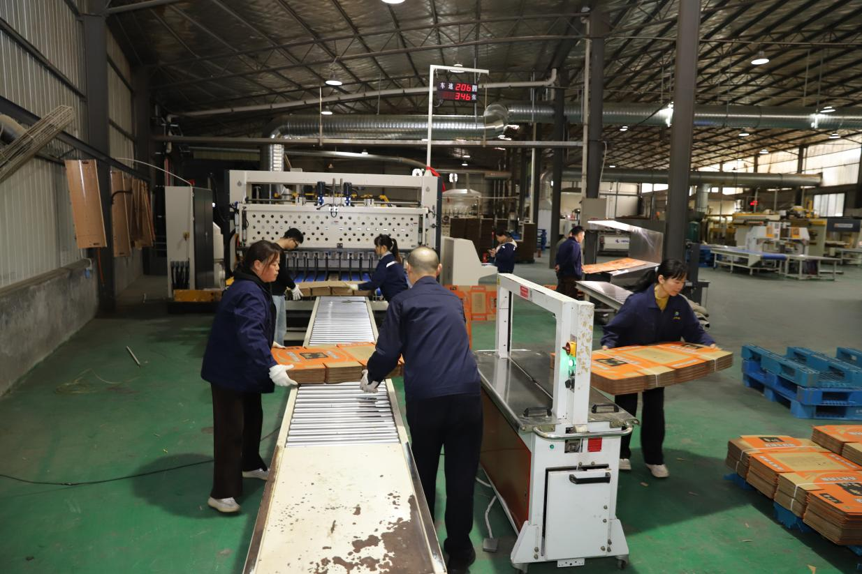 衡阳市金坤包装有限公司车间内一派繁忙,员工们分工协作、高效作业,以实干劲头保障市场供应。