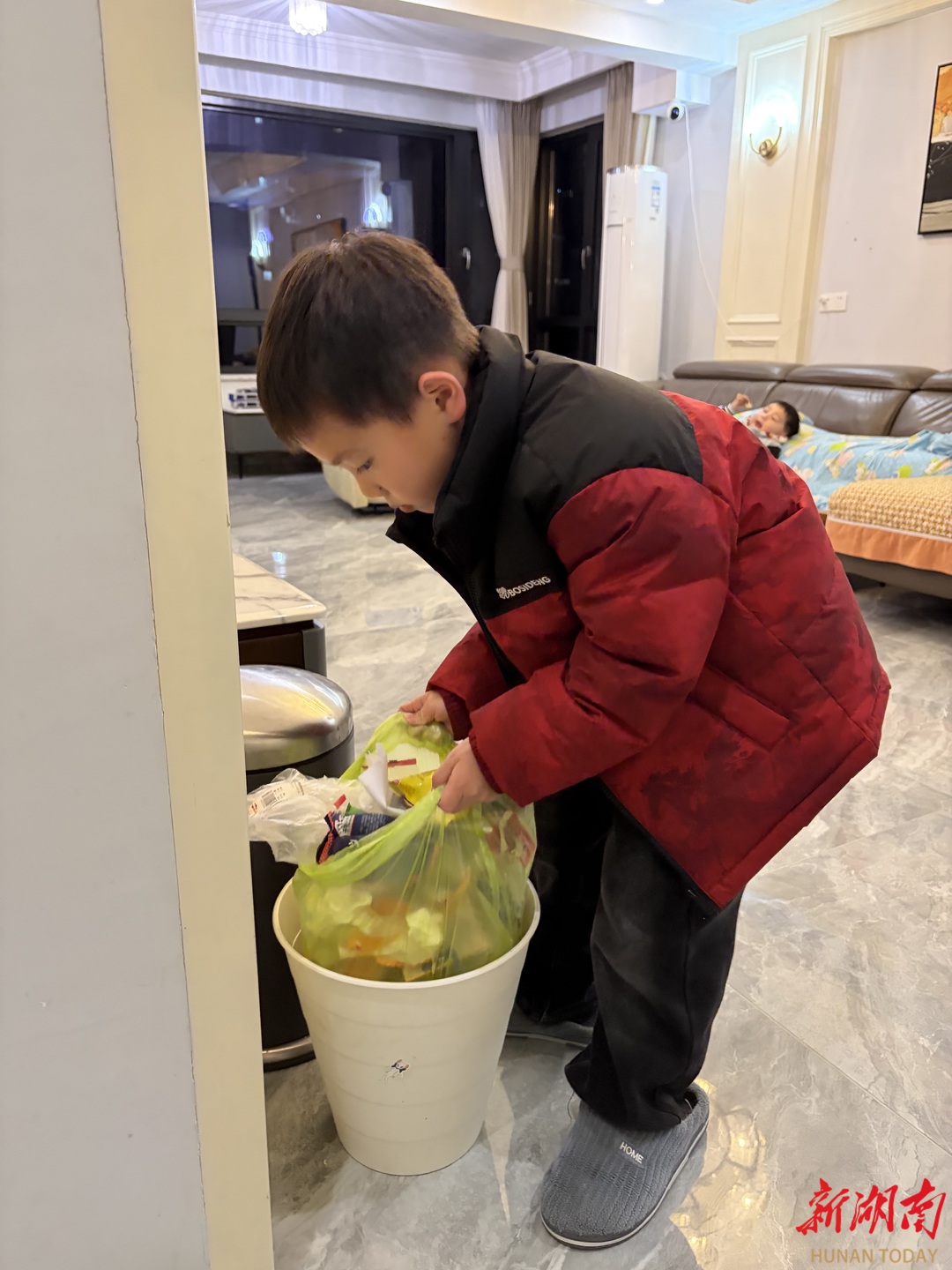 系紧垃圾袋,我是妈妈的得力助手!