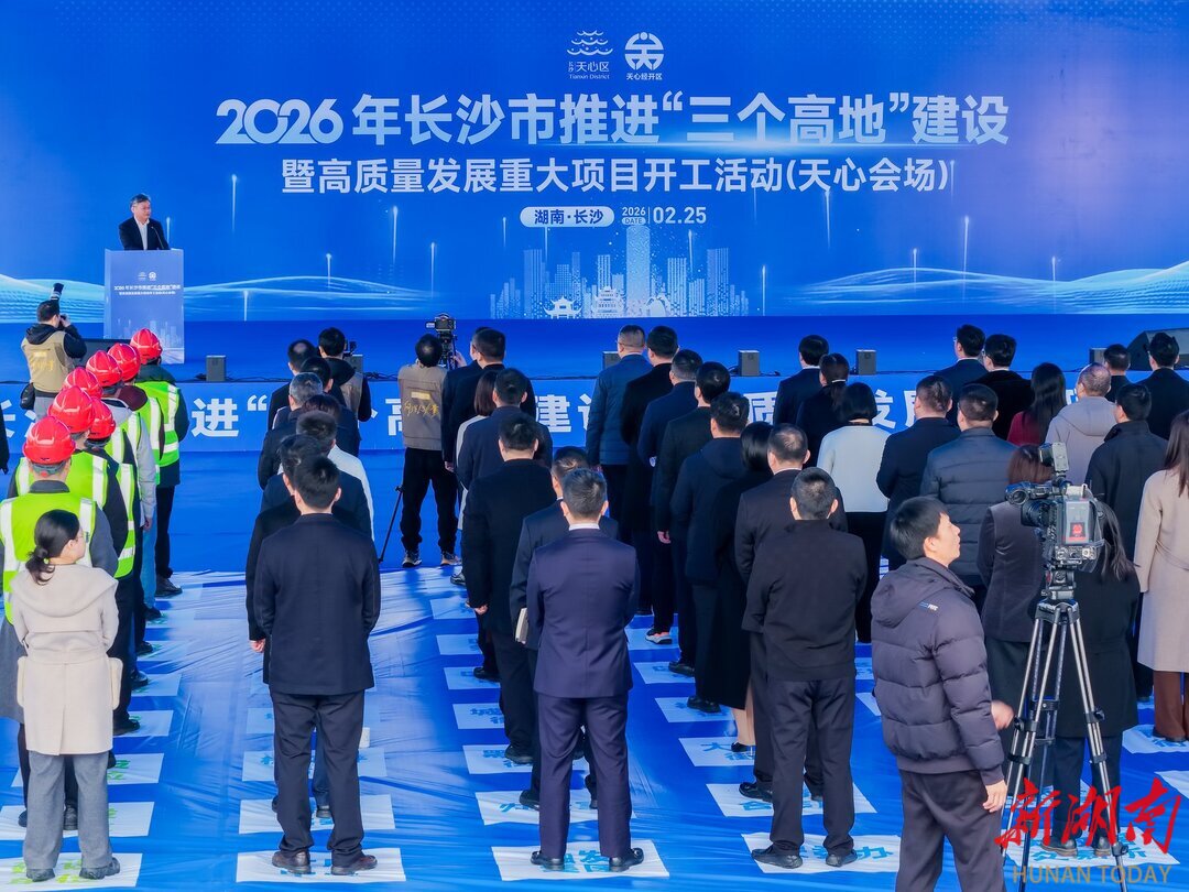 湖南日报·新湖南客户端2月25日讯(记者 彭诗思)春潮澎湃处,奋楫争先时。2月25日,2026年长沙市推进“三个高地”建设暨高质量发展重大项目开工(天心会场)活动在音视频装备制造基地(数智健康产业创新基地A区)举办,总投资120亿元的15个重大项目集中破土。
