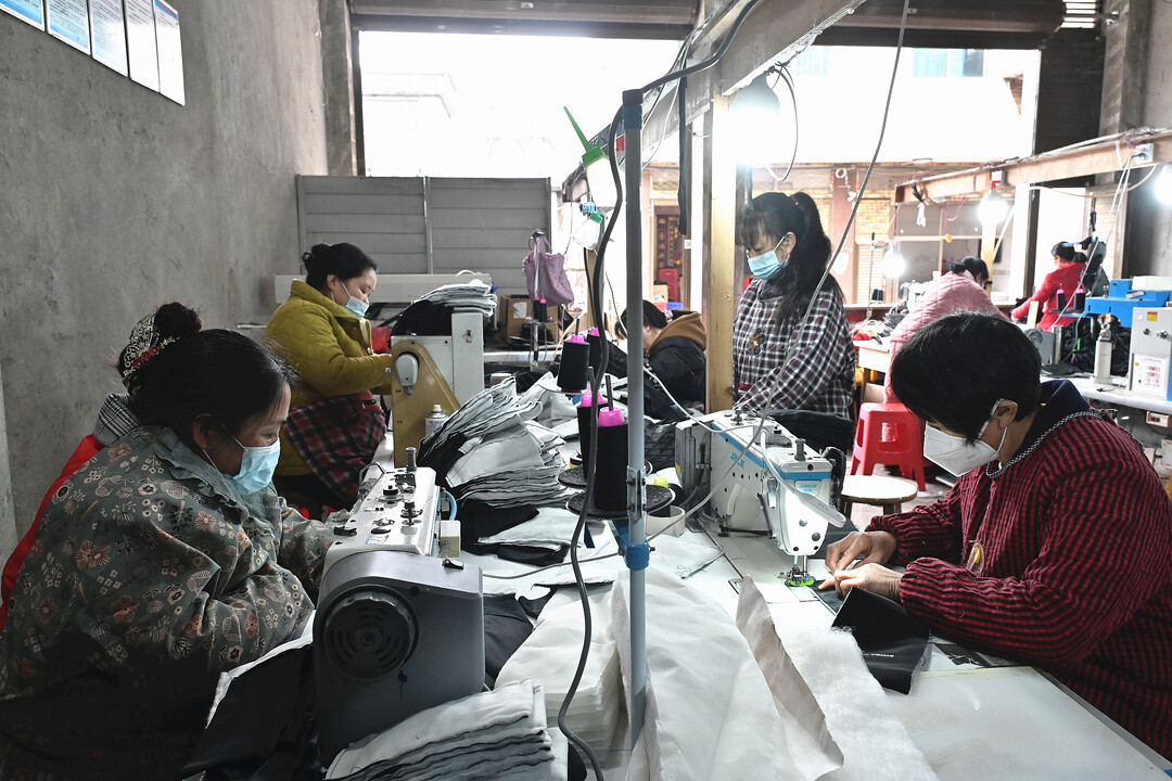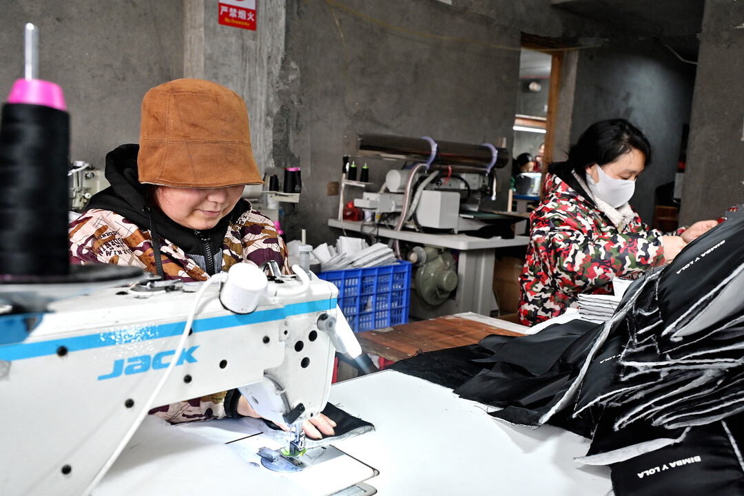湖南日报·新湖南客户端2月25日讯(通讯员 贺上升)2月24日,隆回县金石桥镇黄金井村妇女正在福鑫手袋厂上班。近年,该镇通过优化营商环境,承接沿海城市产业转移,创办了一批民营加工企业,既解决了村民在家门口的就业问题,又促进村民务工增收。春节过后,当地企业工厂复工复产赶订单,冲刺首季“开门红”。