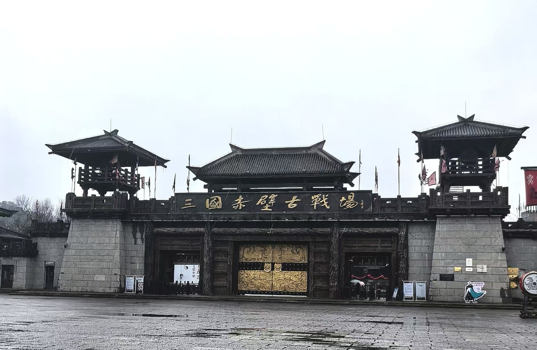 抵达“三国赤壁古战场”时,室外气温低至4°C,凛冽的寒风中还淅淅沥沥下着小雨,低温凄雨却抵不住我们的游览热情。