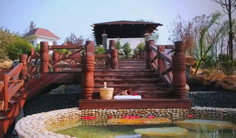 栖凤泉与我们入住的房间仅一墙之隔。“咸宁十二泉”虽都为温泉,却各有不同。栖凤泉为东南亚巴厘岛风格设计的多功能室内外温泉,格调新颖,恬静幽雅,占地3万平方米,50多个特色温泉池依山势而建,错落有致地分布在自然山脊之中。每一处温泉池都与山底景致相互映衬,构成一幅幅远近高低各异的画卷,既精巧又壮观,令人叹为观止。