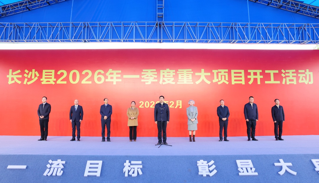 湖南日报·新湖南客户端2月25日讯(记者 王茜 通讯员 郑远悌)2月25日上午,长沙县2026年一季度重大项目开工活动在自贸临空区举行,长沙经开区党工委书记、长沙县委书记王雄文宣布项目开工,长沙县委副书记、县长陈永高主持并讲话。