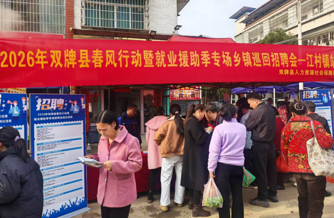 湖南日报·新湖南客户端2月25日讯(通讯员 周顺文 蒋海华)2月23日,双牌县人社局在江村镇农贸市场举办2026年“春风行动”首场乡镇巡回招聘会,把岗位、就业服务、惠民政策直接送到群众“家门口”,助力乡亲就近就业。