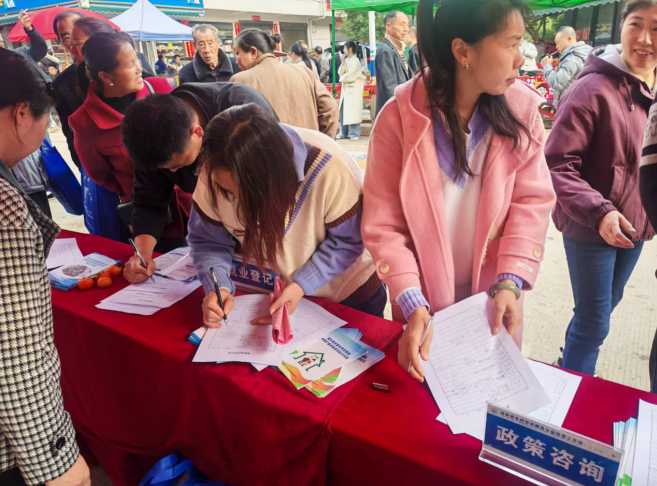 本次招聘共30家企业提供普工技工、家政服务、电子制造等466个就业岗位,覆盖不同学历、年龄与技能层次,充分满足返乡务工人员、农村劳动力、高校毕业生、退役军人等重点群体就业需求。活动现场,求职者们主动了解岗位信息、薪资待遇,工作人员耐心解答、现场登记意向。同时,现场设置政策咨询服务台,就社保参保、技能培训、创业扶持等政策进行宣讲。本次招聘会发放宣传资料1000余份,初步达成就业意向58人。