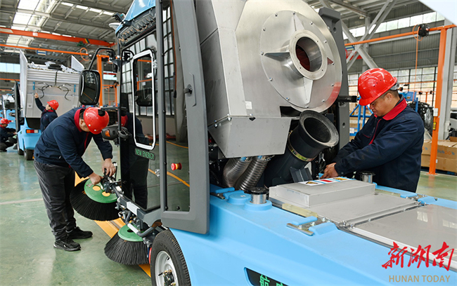 The photo, taken on February 24, shows workers busy assembling new energy sanitation vehicles in an environmental industry company in Dongkou Economic and Technological Development Zone. That day marked the first working day after the Spring Festival holiday. Local enterprises resumed production, striving to get off to a good start. (Photo/Teng Zhizhong)