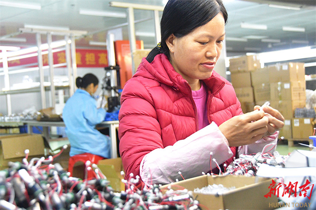 The photo, taken on February 24, shows workers busy on an adaptor production line in Daoxian County High-tech Industrial Development Zone. That day marked the first working day after the Spring Festival holiday. Local enterprises resumed production, striving to get off to a good start. (Photo/Jiang Keqing)