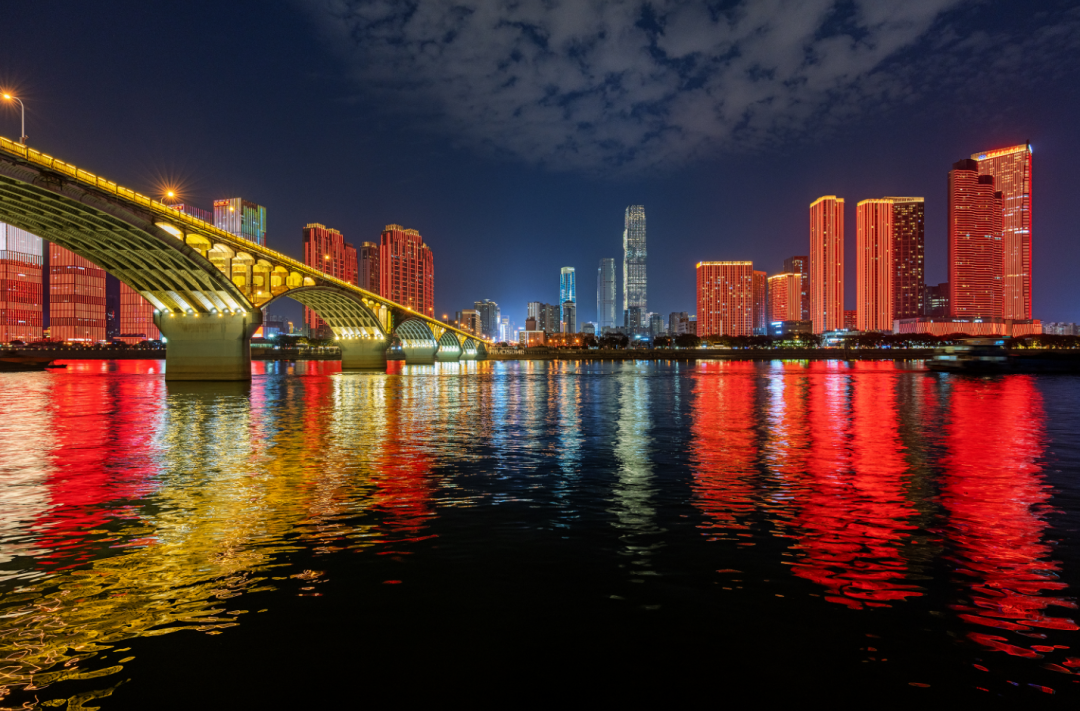 春节期间,无人机掠过湘江。这条看惯的江,从空中望去,竟如此柔软地环抱着城池。墨色水纹中,倒映一半霓虹成河,一半烟火蒸云。