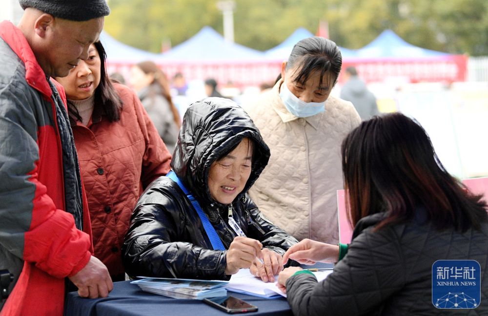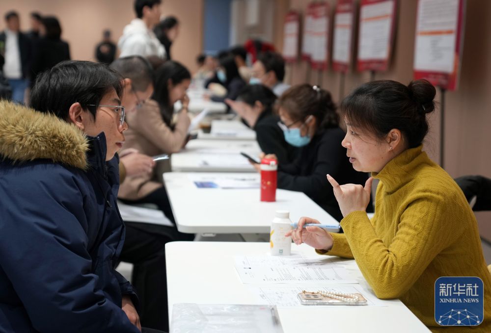 ↑ 2月25日,求职者在浙江省建德市新春人才招聘会现场咨询应聘。新华社记者 徐昱 摄