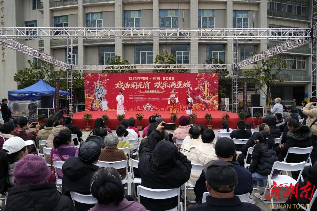 湖南日报·新湖南客户端2月25日讯(记者 胡雪怡 通讯员 陈浪 摄影 张国栋)马年元宵将至,星城街巷年味正浓。2月25日,长沙市群众艺术馆户外演出现场暖意融融、越音婉转,“戏曲闹元宵,欢乐满星城”2026公益惠民系列活动首场越剧折子戏专场火热开锣。长沙小百花戏剧艺术团携7折精品折子戏登场,为星城戏迷送上元宵戏曲盛宴。