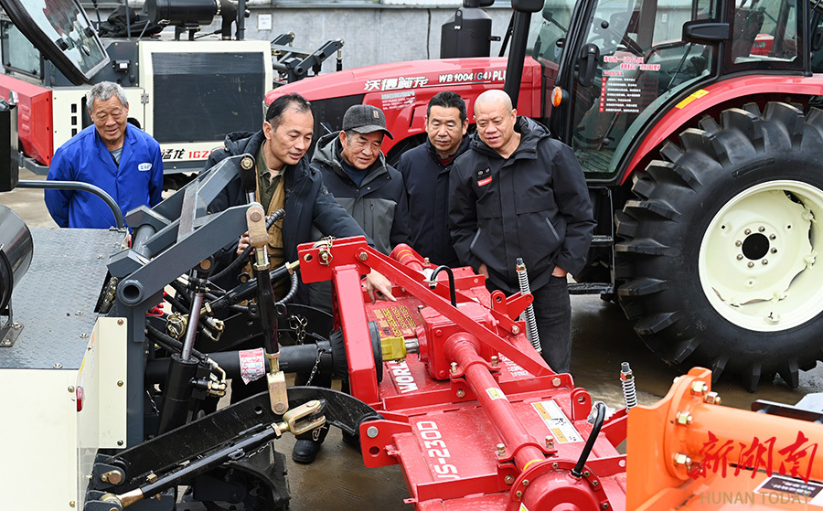 2月25日,洞口县万利农机销售服务有限责任公司,农民在选购农机设备。近期,当地农机市场迎来销售旺季,耕田机、播种机、插秧机等农用机械需求旺盛,农民积极选购,为春耕生产做好准备。滕治中 摄(湖南图片库)