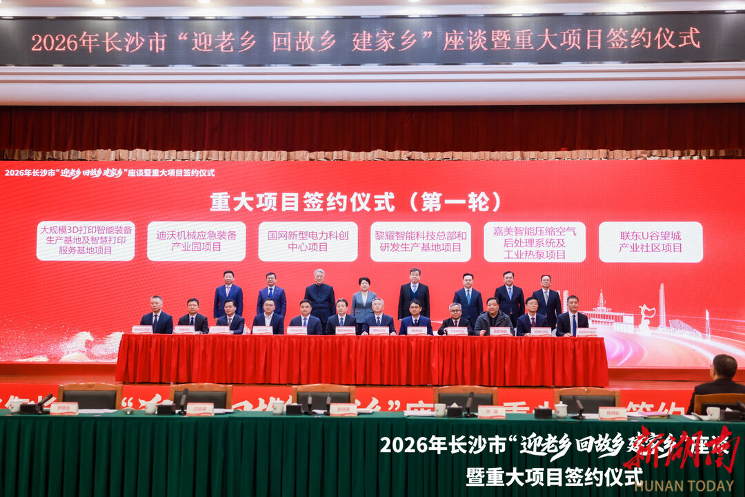 湖南日报·新湖南客户端2月26日讯(记者 张福芳 彭诗思 范远志)2月25日下午,2026年长沙市“迎老乡 回故乡 建家乡”座谈暨重大项目签约仪式举办,以乡情纽带,向全球湘商发出诚挚邀约:家乡长沙,正以最优营商环境、最实产业机遇,等待游子归巢、共启新程。