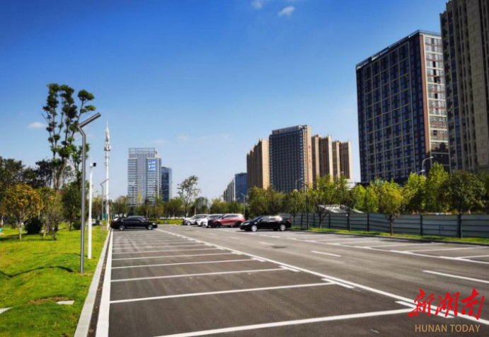 黄兴大道与人民东路交叉口新增215个公共泊位,并同步推进智慧化、人性化配套。长沙县城管局供图
