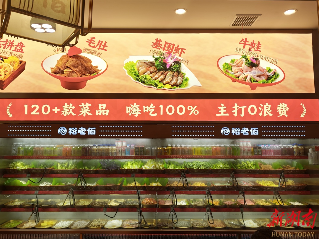 在食材管理上,裕老佰采用了精细化运营策略。对于黄鸭叫、牛蛙和毛肚等价值较高的产品,采用小碟分装自取的形式。这种模式不仅有效控制了食材损耗,避免了传统自助餐的浪费现象,也保证了取餐过程的干净与卫生,提升了消费者的用餐体验。