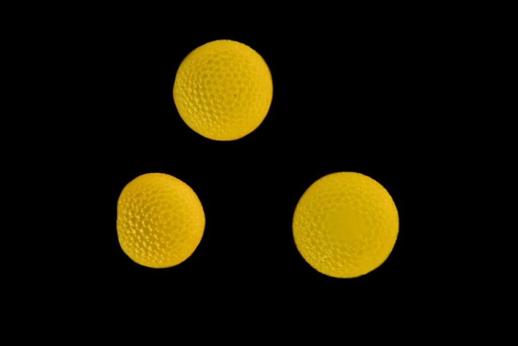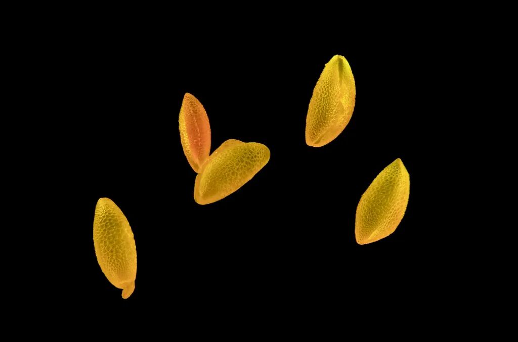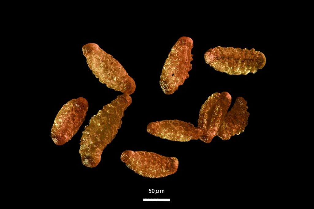 A:每个发现都很有趣。比如说百子莲的花粉,在镜头下呈现规整的长尖卵形,表面覆盖着细腻的鳞状肌理,像自然雕琢的微缩雕塑。萱草的花粉则像一枚被时光镀金的芒果。
