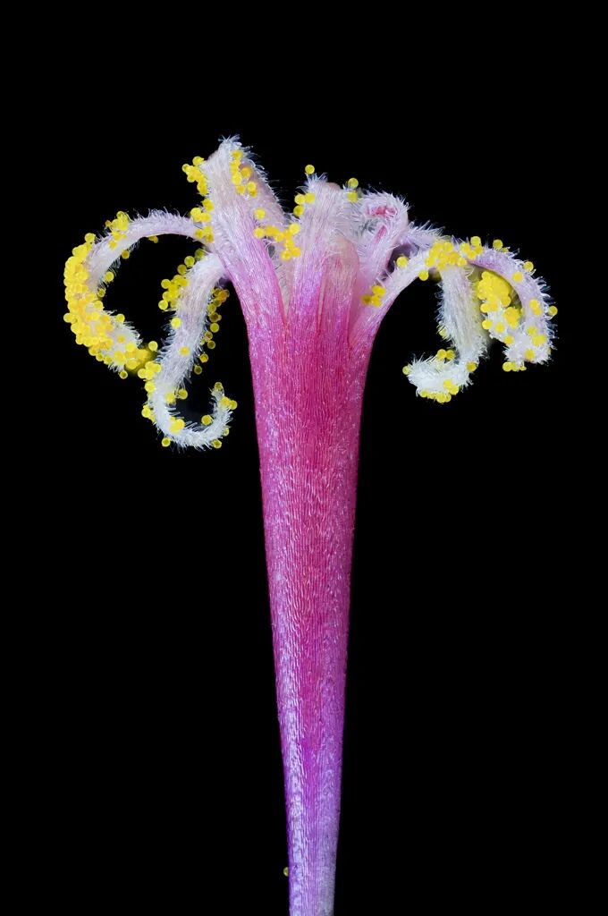 A:这确实是个好问题。很多人问我为什么把镜头对准这些肉眼几乎看不见的存在。其实原因很简单——在肉眼所及的花蕊之下,隐藏着一个被完整忽略的形态世界。