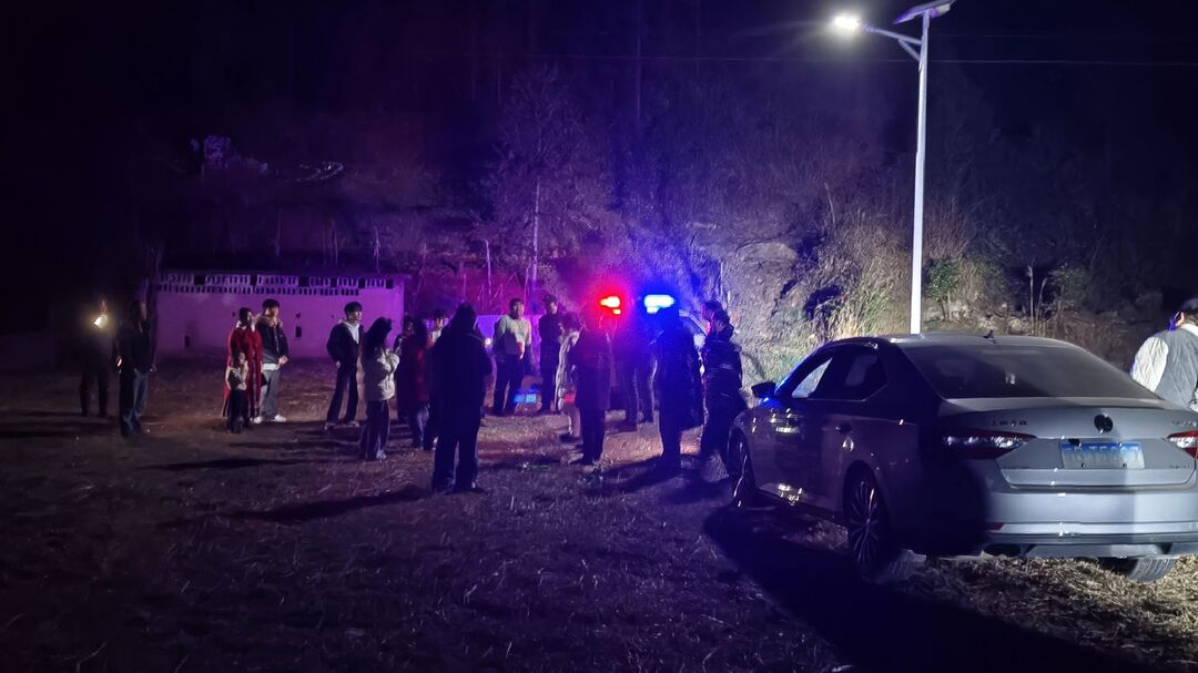 警灯闪烁,连夜进山搜寻