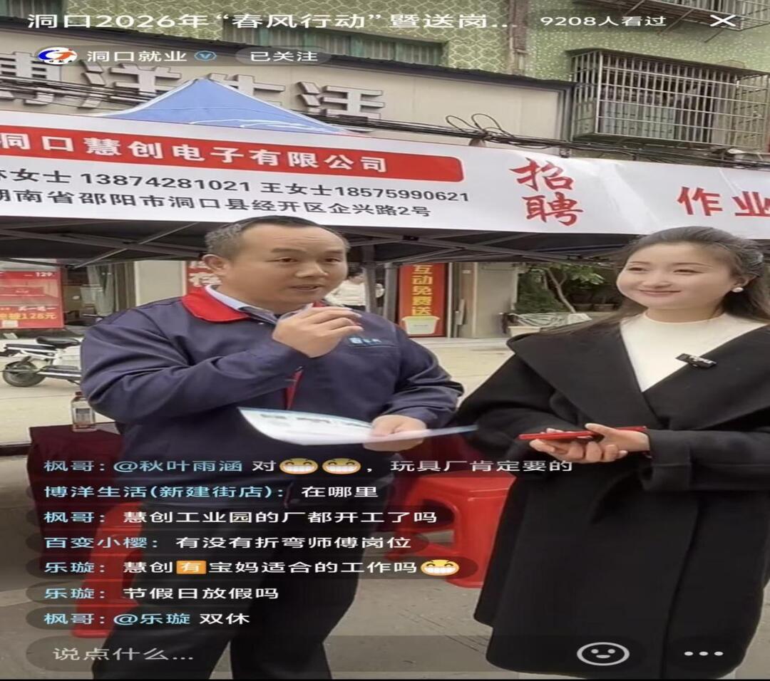招聘会同步开启“洞口就业”抖音直播间进行“直播带岗”。直播间内,主播化身“就业红娘”,带领线上网友“云逛”招聘会,逐一推介企业岗位信息、薪资福利,实时解答网友提问,累计吸引1.3万余人次在线观看、咨询,当天56名求职者通过线上渠道与企业达成初步沟通意向,实现线下精准对接、线上广泛覆盖的良好效果。