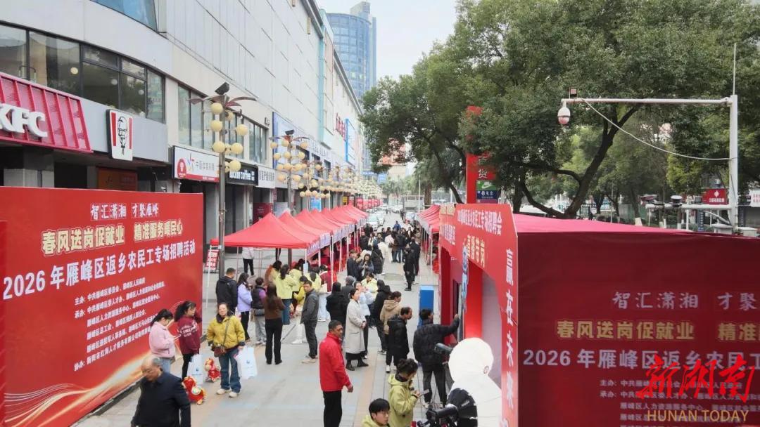 湖南日报·新湖南客户端2月26日讯(通讯员 郝慧婷)2月25日,大年初九,年味尚未散尽,就业暖意已至。雁峰区“智汇潇湘 才聚雁峰——2026年雁峰区返乡人员专场招聘活动”在大洋百货广场举行,活动以“春风送岗促就业,精准服务暖民心”为主题,为返乡人员送上新年“就业春风”。