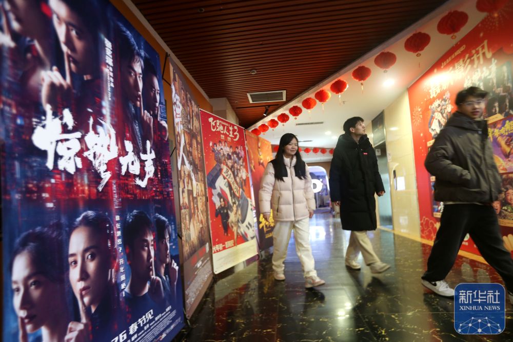 ↑ 2月24日,观众在黑龙江省哈尔滨市一家电影院入场观影。新华社发(原勇摄)