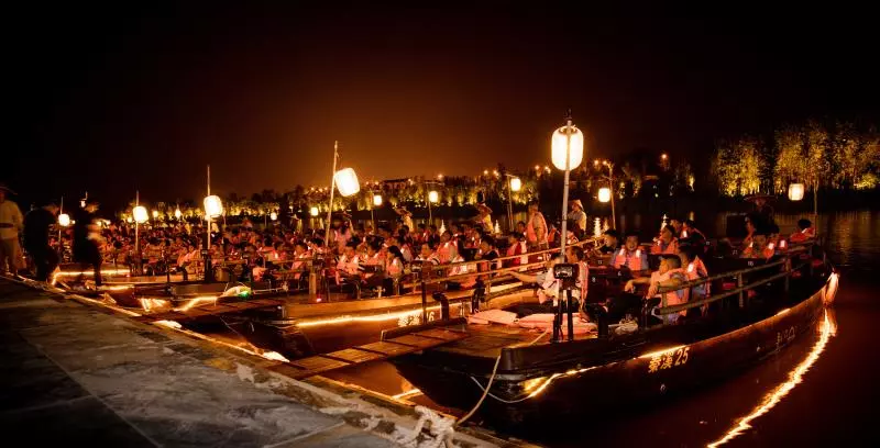 《桃花源记》实景演出以河流为媒介、以画中游的观演模式,结合自然生态景观,打造世界首个“十里秦溪”河流剧场,生动还原陶渊明笔下“芳草鲜美,落英缤纷”、“有良田美池桑竹之属”的“世外桃源”,真实再现陶渊明笔下无数文人骚客倾心向往的绝世圣境,给观众带来“怡然自乐”的视听感受,重现千百年来华人心中魂牵梦萦的场景。