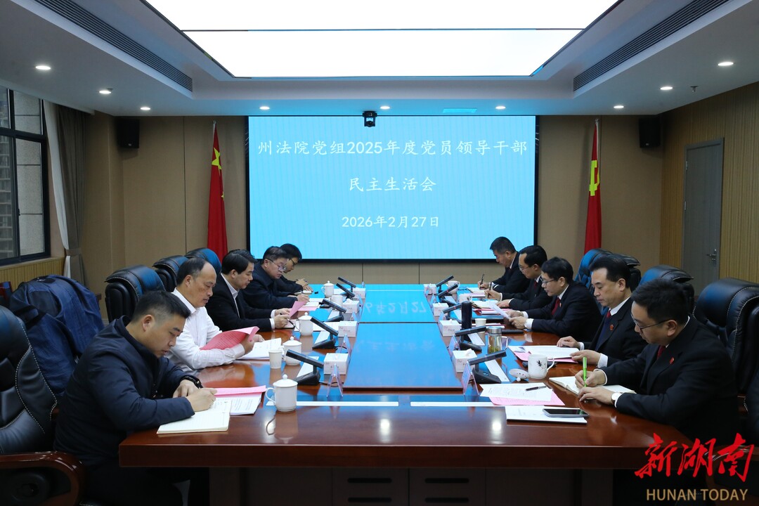 新湖南客户端2月28日讯(通讯员 杨芳 徐杨)2月27日,湘西土家族苗族自治州中级人民法院党组召开2025年度党员领导干部民主生活会。湖南高院二级高级法官蒋琳、湘西州委政法委副书记欧金忠和州委政法委委员、州纪委监委驻州委政法委纪检监察组组长彭长权到会指导并点评。湘西中院党组书记、院长彭建民主持会议。
