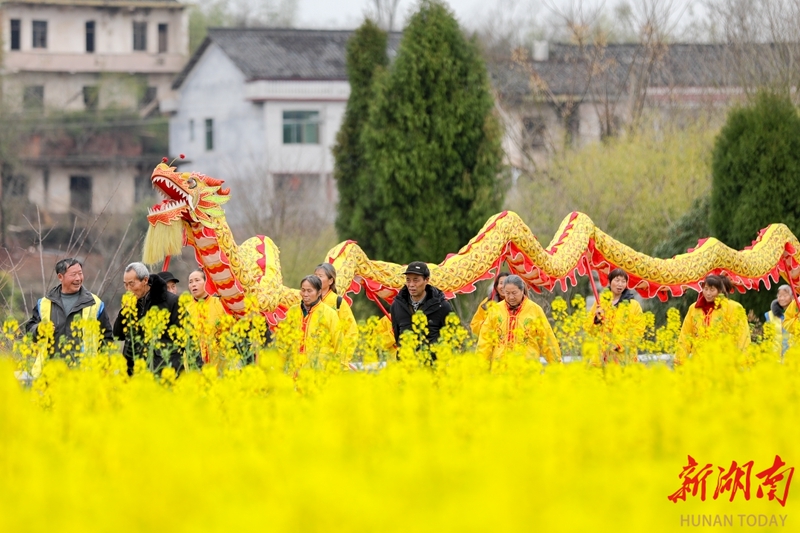 3月1日,衡阳县台源镇台九村,村民舞动稻草龙走村串户。元宵节将至,当地举办民俗巡游活动,喜迎佳节。刘欣荣 摄(湖南图片库)