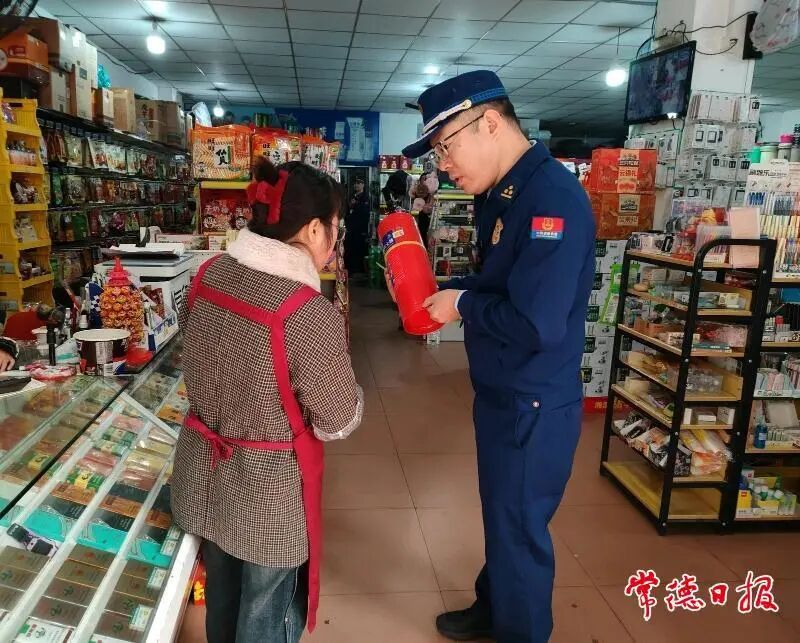 石门县消防救援局对超市灭火器材进行检查